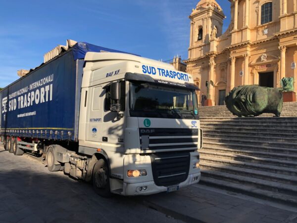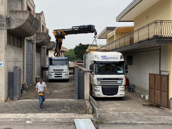 This gallery features images of Sud Trasporti vehicles in action during their daily operations: trucks on the road, loading and unloading maneuvers, and entries and exits from warehouses and logistics hubs. The photos highlight the operational side of freight transport, showcasing the company’s reliability and field presence.